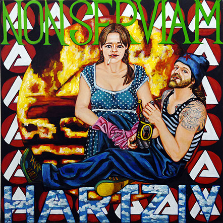 Auf den ersten Blick schrill und provokant, auf den zweiten Blick verstörend ungemütlich - die Gesellschaftstypen, welche von Samuel Wiesemann ins Bild gerückt werden, treten ikonenhaft in Erscheinung. In Anlehnung an den Proletkult sucht der Künstler aktuelle Gesellschaftstypen auf, um sie wie Schablonen kollektiver Schicksale zu verbreiten.